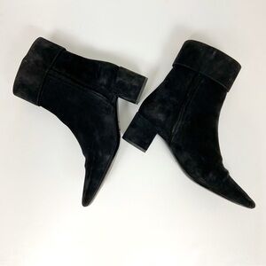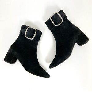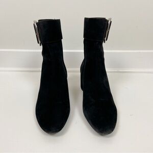 Saint Laurent Joplin Block Heel Black Suede Almond Toe Buckle Ankle Boot Size 37