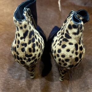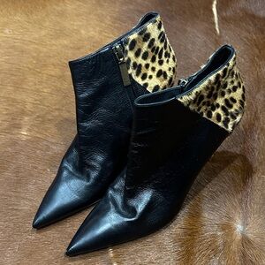 Saint Laurent Kiki Leopard and Black Ankle Boots sz 39