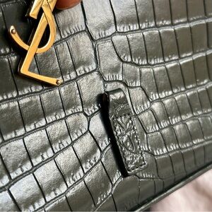 Saint Laurent Le 5 À 7 in Green Crocodile- Embossed Leather