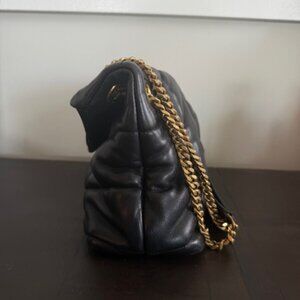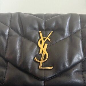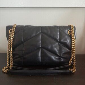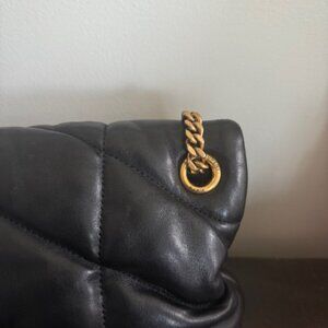 Saint Laurent Lambskin Quilted Small Loulou Puffer Monogram Chain Satchel Black