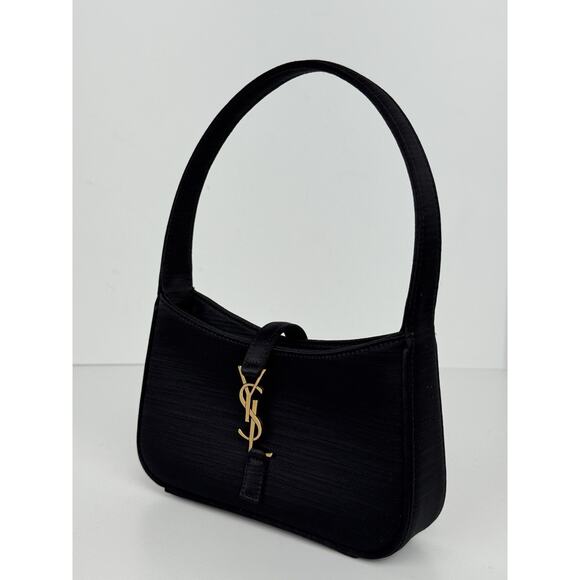 Saint Laurent Le 5 A 7 Mini Hobo Bag Black Satin