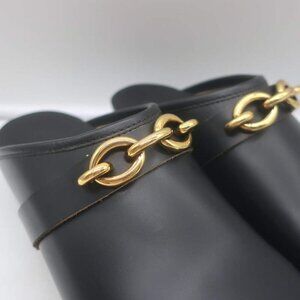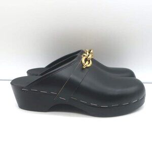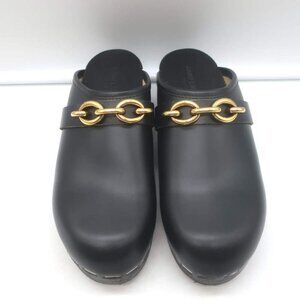 Saint Laurent Le Maillon Chain-Embellished Clogs Black Leather Size 40