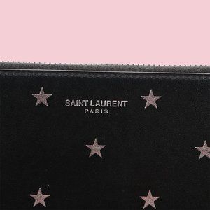 This black Saint Laurent star print leather pouch bag has been expertly crafted in Italy. It features a silver foil stamped logo and stars on the front, silver tone hardware and a zip closure. Some are superstars because they can sing or act. Others, because they know how to choose their accessories. And if you're wearing this star-embossed pouch you will make that list. Perfect as a carrying case for your Ipad or other tech accessories, or even as a clutch for a night out. You can't go wrong with this pouch!