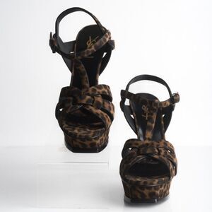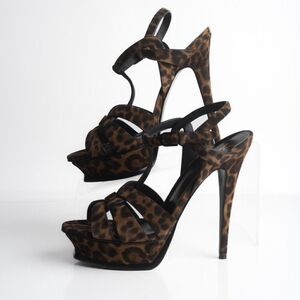 Bold leopard print sandals with a striking platform. Perfect for making a statement.
