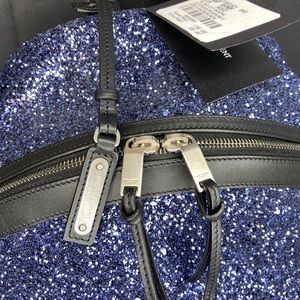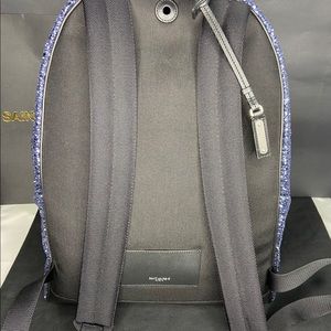 Saint Laurent Logo Sea Navy Glitter City Backpack