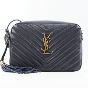 Saint Laurent Lou Quilted Leather Shoulder Camera Bag In Deep Marine & Gold