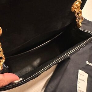 Authentic YSL Patent Matelasse Monogram Medium Vicky Chain Bag in Black. Deeply discounted item. Original price was $2290 plus tax $2427.