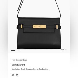 Elegant black shoulder bag featuring stylish gold accents. Perfect for any occasion. Please check photos for signs of wear.