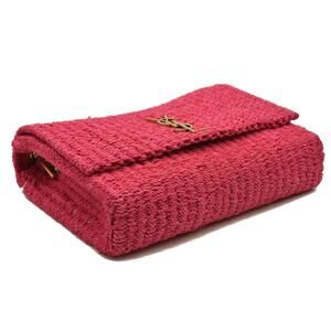 Saint Laurent Medium Kate Raffia Shoulder Bag Pink Glo