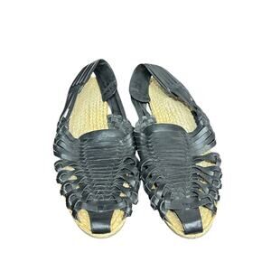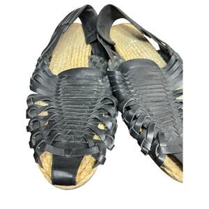 Saint Laurent Men's 45 Black Woven Leather Raffia Espadrilles Sandals EUC