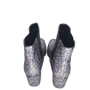 Add instant glam to your look with these stunning Saint Laurent ankle booties! Featuring a shimmering metallic glitter finish, comfortable slip-on style, and a chic almond toe, these beauties are perfect for parties, nights out, or adding sparkle to any outfit. The sturdy block heel gives you height with all-day wearability.