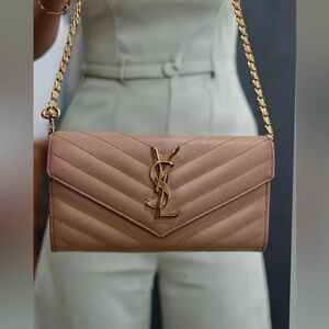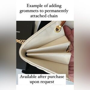Chain may be permanently installed with grommets upon request after purchase. YSL wallet on chain is retail $1790 so this is a great affordable alternative bag