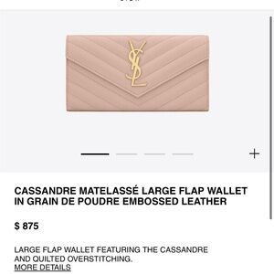 Authentic Yves Saint Laurent Cassandre envelope flap matelasse long wallet, converted to crossbody WOC bag. Rare stunning blush pink color and gold hardware. Almost all blush pink comes with silver but this is a rare gold! Perfect spring neutral color!