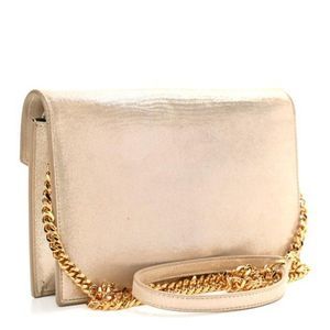 Saint Laurent Monogram Envelope Chain Wallet Metallic Fabric Champagne Gold