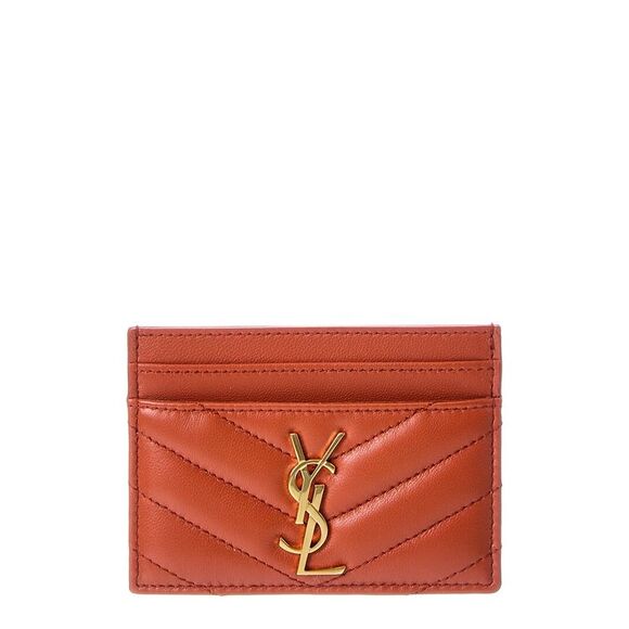 Saint Laurent Monogram Matelasse Leather Card Holder, Orange