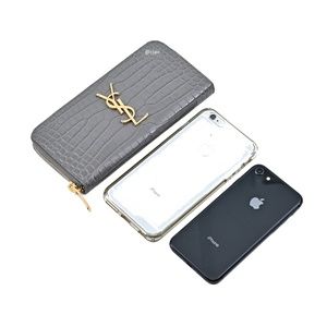 Saint Laurent Monogram Zip Croc Embossed Leather