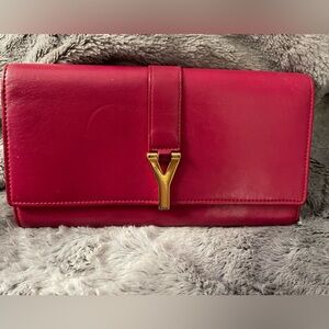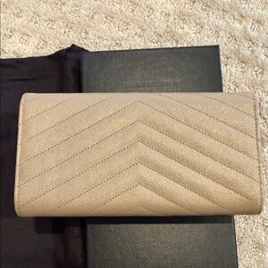 Saint Laurent Monogramme logo leather flap wallet dark beige