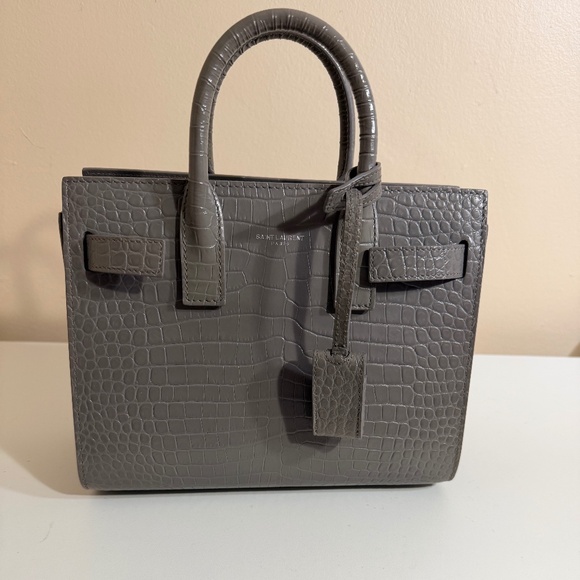 Saint Laurent Nano Sac de Jour Croc-Embossed Tote Bag