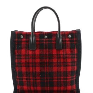 Saint Laurent Noe Red and Black Plaid Tote Bag. Rare. Large