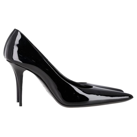 The Saint Laurent Norma Pumps in black patent leather embody timeless Parisian elegance with a sleek, high-gloss finish. Designed with a sharp pointed toe, slip-on silhouette, and a refined 90mm stiletto heel, they offer a perfectly balanced blend of sophistication and allure. Finished with a branded leather insole and leather sole, these pumps are an essential statement for polished day or evening looks.
