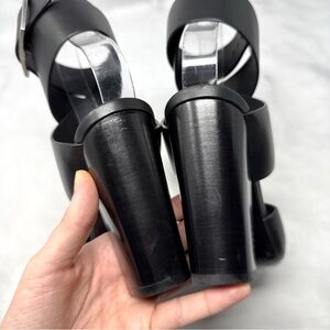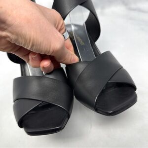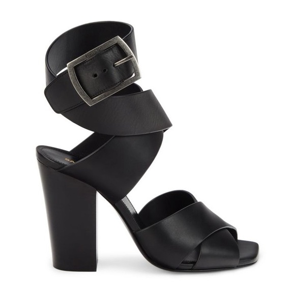 Saint Laurent Oak 100 Buckle Strappy Square Toe Sandal Block Heels Glam Black 36