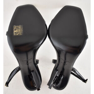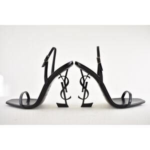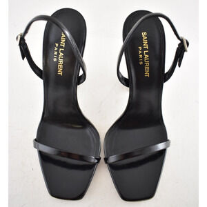 Saint Laurent Opyum 110 Black Leather YSL Logo Heel Slingback Strap Sandal 39.5