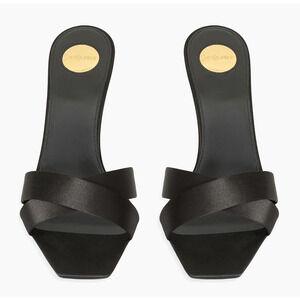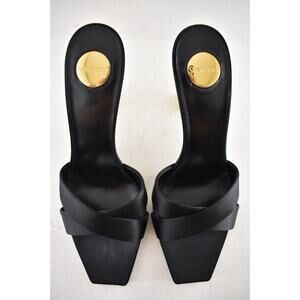 Saint Laurent Opyum 85 Sandal Black Satin Gold YSL Heel Backless Mule Pump 37