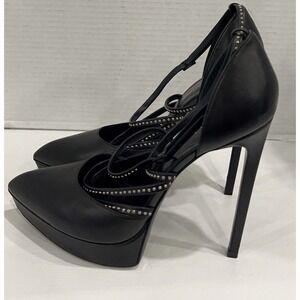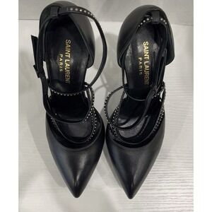 Saint Laurent Paris Black Leather Platform Stiletto Pumps Size EU 38 Italy Heels
