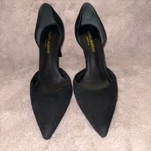 Saint Laurent Paris Black Suede D’Orsay Pointed Toe Stiletto Heels | Designer