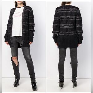 Saint Laurent Paris Cable Knit Striped Wool blend Cardigan