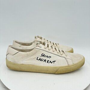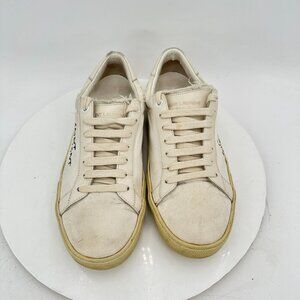 Saint Laurent Paris Court Women 10 Men 7 White Leather Low Top Casual Shoes