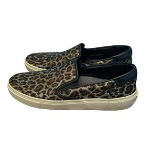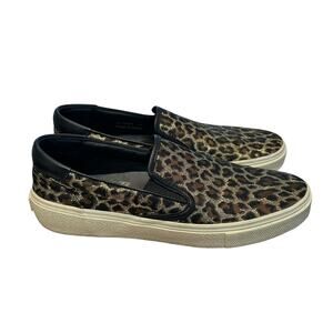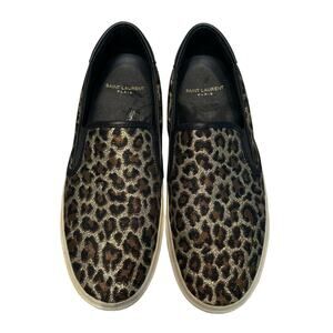 Saint Laurent Paris Gold Metallic Leopard Print Slip On Shoes Womens 39 / US 9