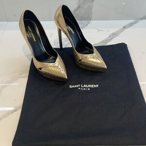 Saint Laurent Paris Notched Python-Embossed Pump, in Gold High Heel Size 38.5