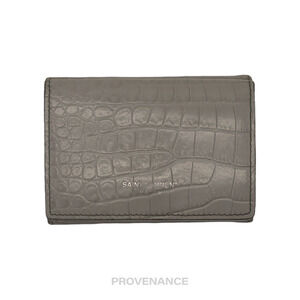🔴 Saint Laurent Paris SLP Compact Snap Card Wallet - Gray Croc Leather
