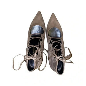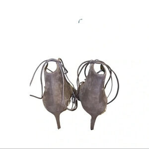 Saint Laurent Paris Tie Strap Gray Suede Heels Size 36.5