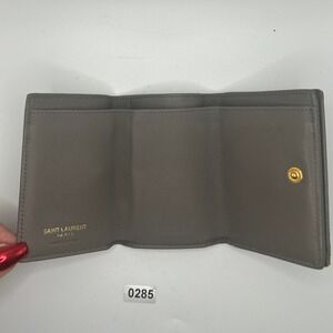 Saint Laurent Paris Tri Fold Wallet Gray Leather YSL Logo Snap Closure#285