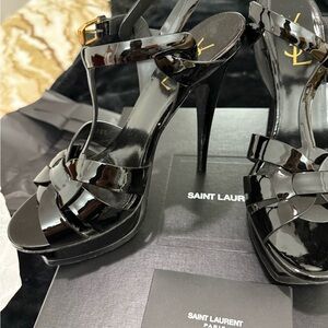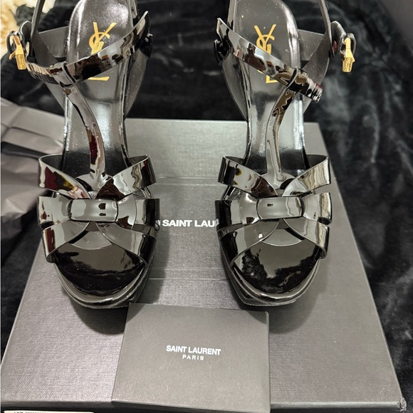 Saint Laurent Patent Black Strappy Heels