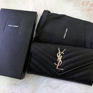 Saint Laurent Patent Passport Case, Brown