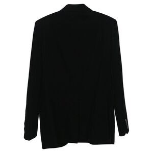 The Saint Laurent Peak Lapel Blazer in Black Velvet is a luxurious and sustainably-minded single-breasted jacket designed with responsible materials such as certified viscose and recycled cupro. It features a sophisticated notched collar and is adorned with a satin-covered button closing, adding a touch of elegance to the design. The blazer includes two front pockets as well as a piped breast pocket, contributing to both style and functionality. Lined with silk, this blazer offers a smooth and comfortable fit. Additionally, it is detailed with two slits on the back, two inside pockets, and four satin-covered buttons at the wrists, showcasing the brand's meticulous attention to detail and quality craftsmanship.