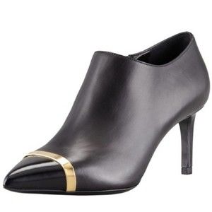 A mix of finishes guides the eye towards the gilded detail on this easy-to-walk-in Saint Laurent mid-heel bootie.