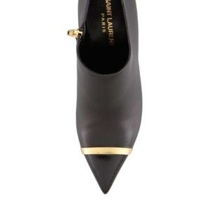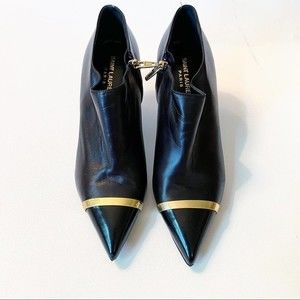 Saint Laurent Pointed Cap Toe Mid Heel Boots with Gold Accent Size 39.5