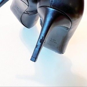 Easy to walk heel means all day comfort. As seen on Angelina Jolie. Very good condition. Minor nicks on right heel. Please see detailed photos.