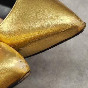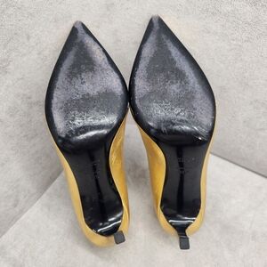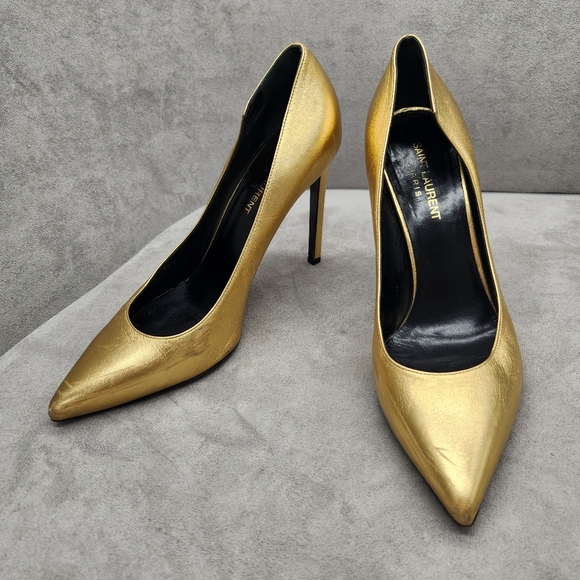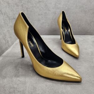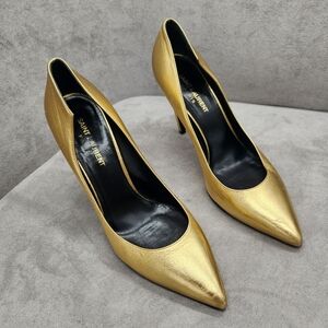 Saint Laurent Pumps 8.5 Golden Leather Stiletto Pointed Toe Luxury Made In Italy