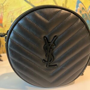 Saint Laurent Quilted Small Black Round Crossbody Bag