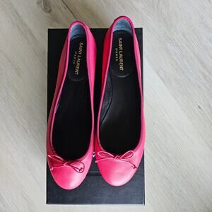 Saint Laurent Raspberry Pink Leather Ballerina Flats Shoe EU 38 1/2 US 8