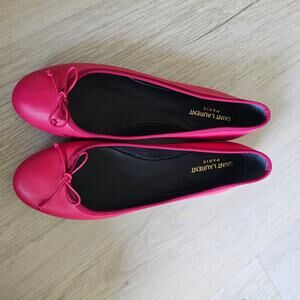Saint Laurent Raspberry Pink Leather Ballet Flats Shoe EU 38 1/2 US 8
