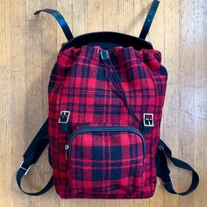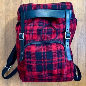 Saint Laurent Red and Black Tartan Wool Backpack - AUTHENTIC/LIKE NEW