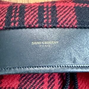 Authenticated Saint Laurent Red & Black Tartan Wool Backpack. Rarely used, like new: no rips, snags, stains or tears on the interior or exterior. All zippers, laces in perfect order. You can see in one photo the serial number for authentication. Truly, a beautiful luxury item.