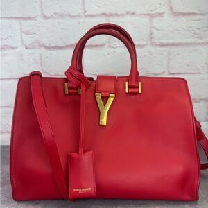 Authentic Saint Laurent Red Monogram Cabas Leather