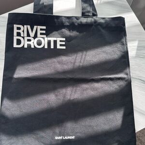 Chic and modern Saint Laurent tote. Features bold Rive Droite print. Ideal for daily essentials.